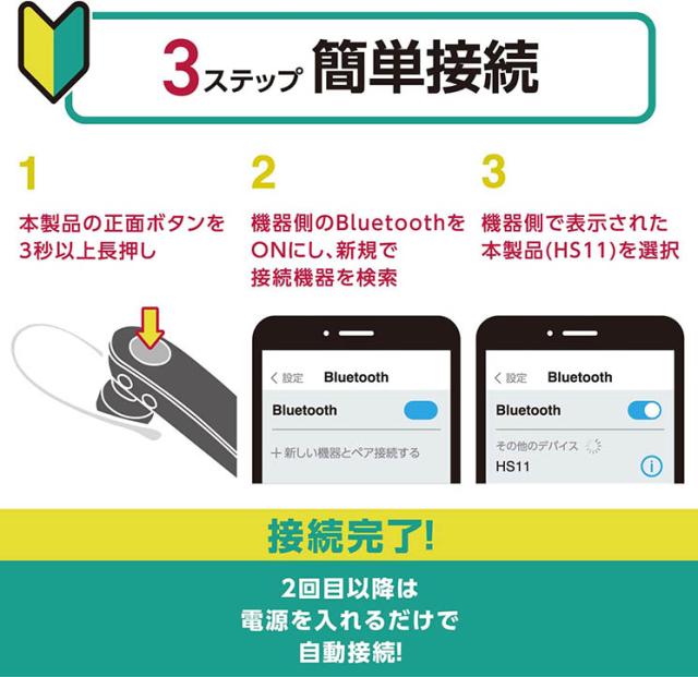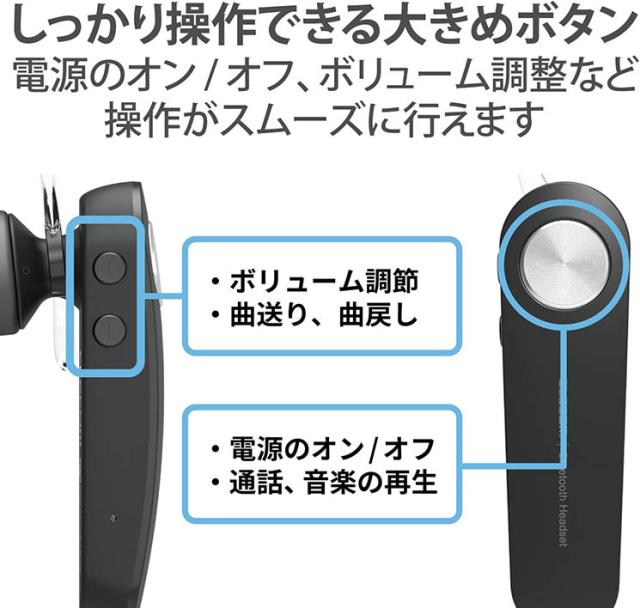 スマートフォンやパソコンに3ステップで簡単に接続可能で、高品質な通話音質を実現するHD Voiceに対応したBluetooth(R)ハンズフリーヘッドセットです。■外形寸法(幅×奥行き×高さ):幅約16mm×奥行約55mm×高さ約29mm(突起部を除く) ■質量:約9g ■保証期間:1年 ■法令対応:TELEC ■付属品:USB充電ケーブル(USB-A to USB Micro-B)、イヤーフック1個、イヤーキャップA、B 各1個 ※Bは本体装着済み ■通信方式:Bluetooth標準規格 version5.0 ■出力:Bluetooth Power Class2 ■最大通信距離:約10m ※障害物なきこと ■使用周波数帯域:2.4GHz帯 ■変調方式:FHSS(周波数ホッピング方式スペクトラム拡散) ■対応Bluetoothプロファイル:HFP, HSP, A2DP, AVRCP ■A2DPの対応コーデック:SBC ■A2DPの対応コンテンツ保護:○:SCMS-T ■最大登録可能台数:2台 ■連続再生最大時間:約6.0時間 ■連続通話最大時間:約6.0時間 ■連続待受最大時間:約100.0時間 ■電源:DC5V ■充電時間:約2時間■マイク型式:エレクトレットコンデンサー型 ■入力端子:USB Micro-B(充電用) ■本体カラー:ブラック