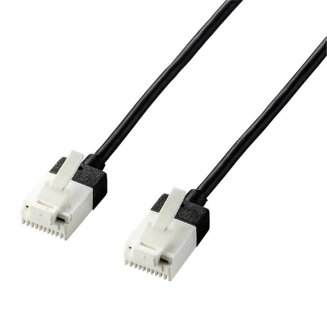 新素材コネクタ採用で通常の使用環境では絶対にツメが折れない!周波数帯域500MHzを保証する10ギガビット・イーサネットに対応。直径わずか3.0mmのスーパースリムケーブルと従来比約40%のショートコネクタを採用したカテゴリー6A準拠のLANケーブル。※1000回の屈曲検査合格(当社検証)■カラー:ブラック ■伝送速度:10Gbps ■インターフェイス:RJ-45コネクター ■環境配慮事項:EU RoHS指令準拠(10物質) ■規格:Cat6A準拠(10GBASE-T/1000BASE-TX/1000BASE-T/100BASE-TX/10BASE-Tに準拠) ■伝送帯域:500MHz ■ケーブル長:2m ■結線方式:ストレート結線 ■ヨリ対芯線(ツイストペアケーブル):○ ■シールド:無し(UTP仕様) ■外部シース(被膜)材質:PVC ■導体構成:ヨリ線(30AWG) ■コネクタ有無:両端コネクター付 ■スリムコネクタ:○ ■爪の折れないコネクタ:○ ■パッケージ形態:アルミ箔袋+ステッカー ■ケーブル太さ:3.0mm ■芯数:8芯 ■モールド加工コネクタ:○