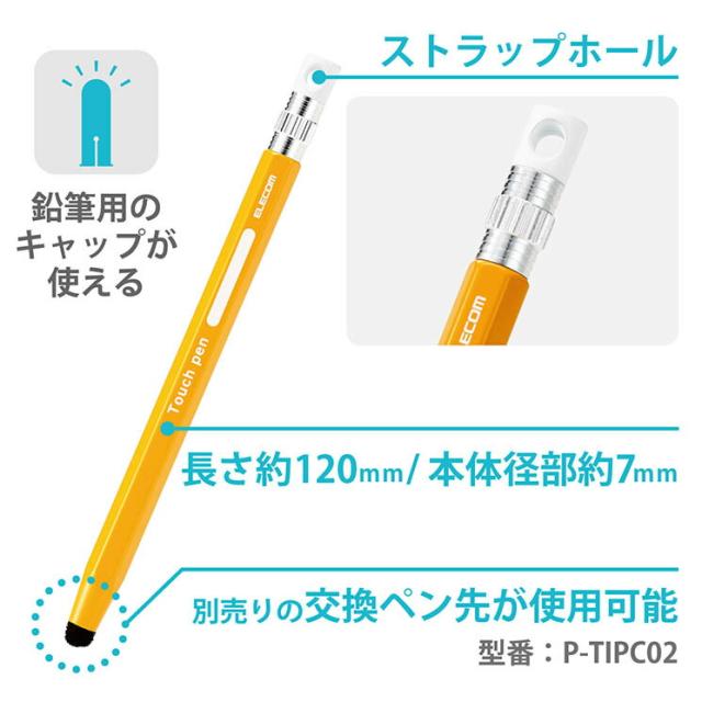 エレコム タッチペン スタイラスペン 超感度タイプ 六角鉛筆型 ペン先交換可 ストラップホール付 【 iPad iPhone Android各種 スマホ タブレット 】対応 イエロー ELECOM
