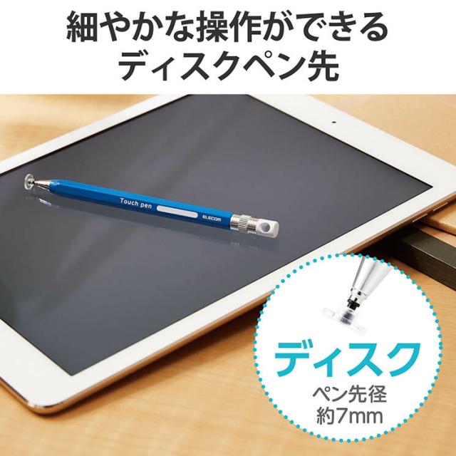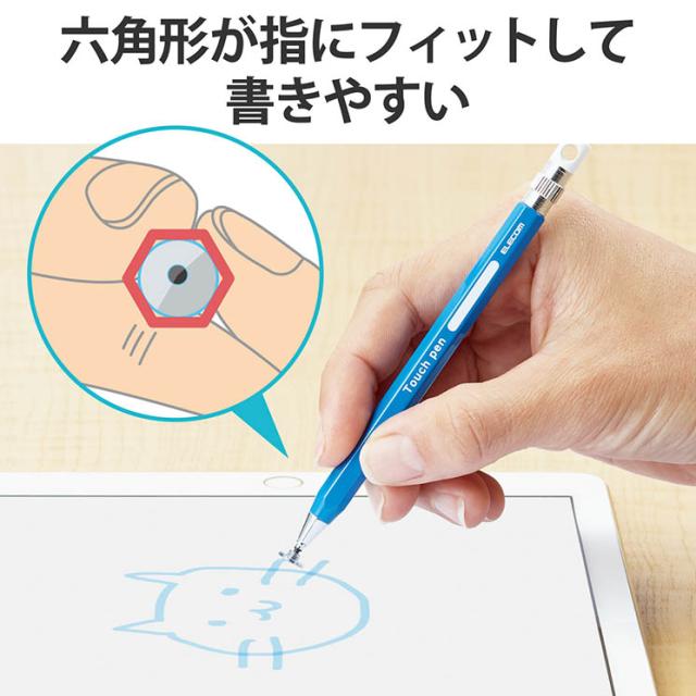 エレコム タッチペン スタイラスペン ディスクタイプ 六角鉛筆型 ペン先交換可 ストラップホール付 【 iPad iPhone Android各種 スマホ タブレット 】対応 ブルー ELECOM