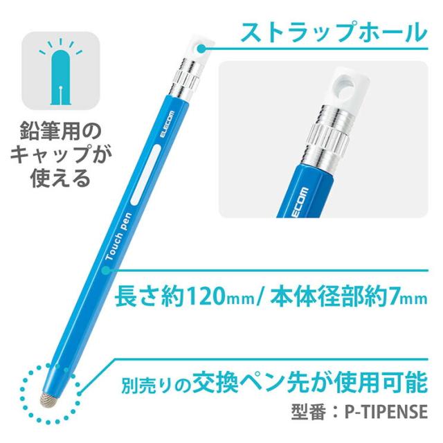 エレコム タッチペン スタイラスペン 導電繊維タイプ 六角鉛筆型 ペン先交換可 ストラップホール付 【 iPad iPhone Android各種 スマホ タブレット 】対応 ブルー ELECOM