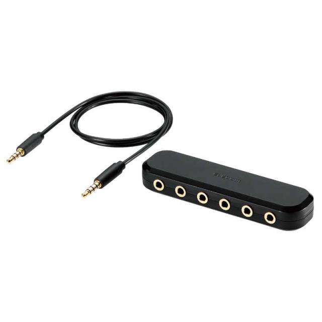エレコム ELECOM イヤホンジャック マルチイヤホンスプリッター 5分配 φ3.5mm 4極 ミニジャック×6 ボイスチャット 通話 EHP-35AD05BK