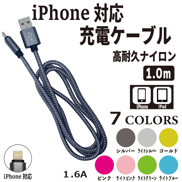 このiPhone対応 充電ケーブルは1.6Aで