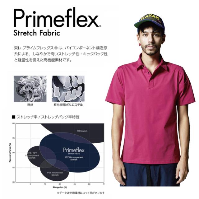 ストレッチ性とキックバック性に優れるプライムフレックス(東レ)素材を使用。