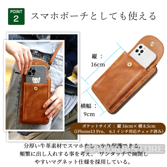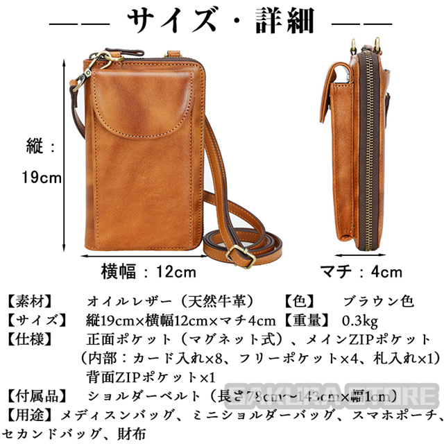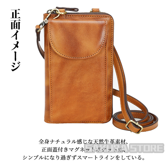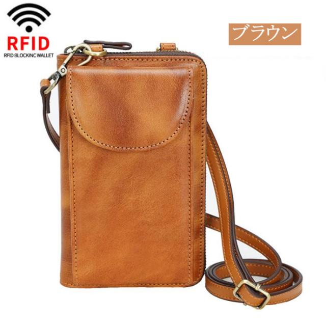 セール中!ショルダーバッグ 小型 本革 ミニショルダーバッグ メディスンバッグ スマホポーチ 2WAY セカンドバッグ 長財布 スキミング防止 RFID財布 メンズ レディース 男女兼用 牛革 ブラウン