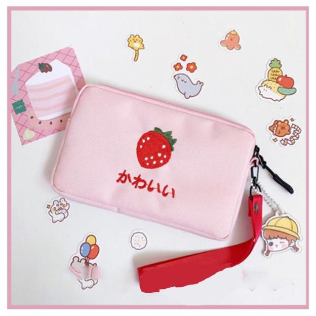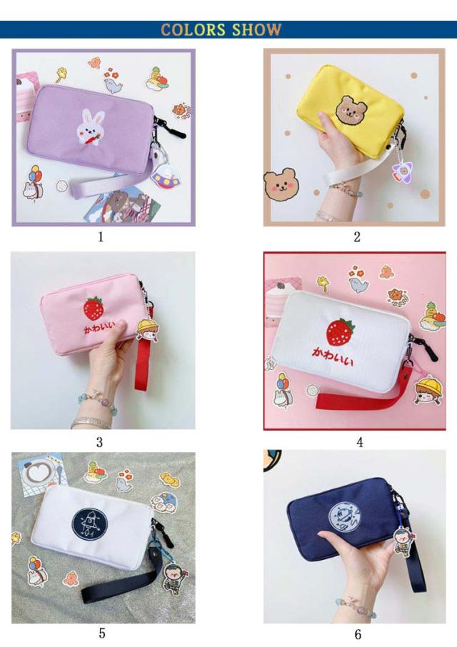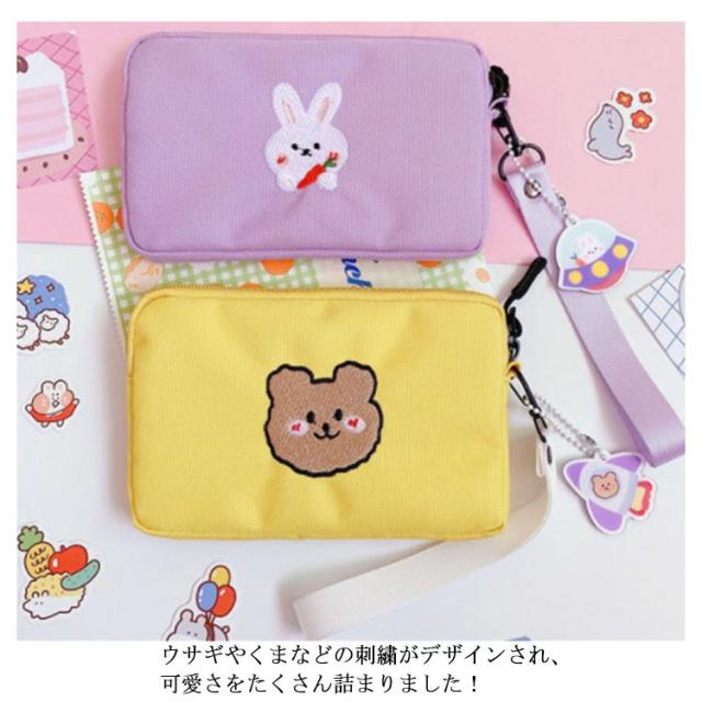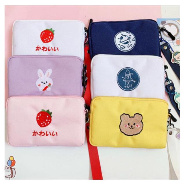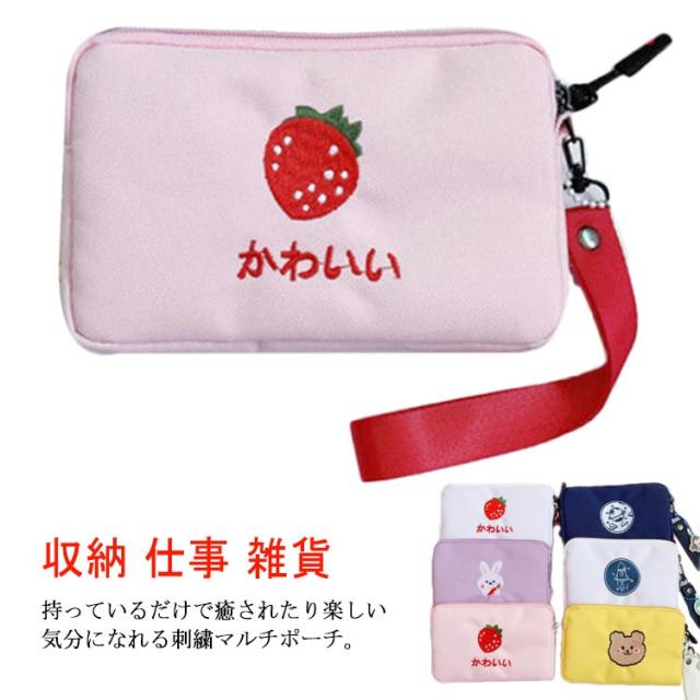 【送料無料】 マルチポーチ レディース 雑貨 小物入れ 仕切り ファスナー コスメポーチ 化粧ポーチ 刺繍 刺しゅう ウサギ くま いちご 宇宙 整理整頓 収納 仕事 学生 通勤 化粧ポーチ コスメポーチ カードケース トラベルポーチ
