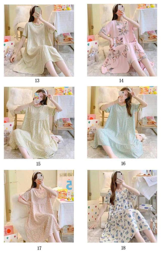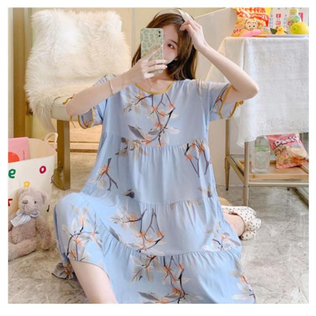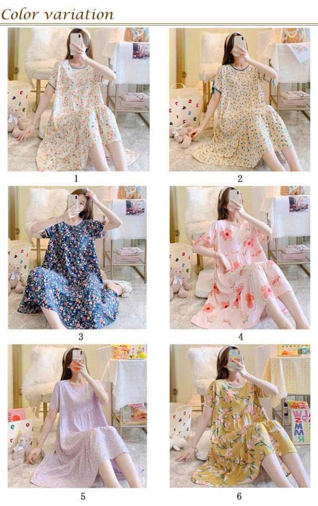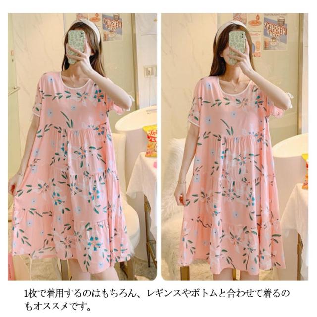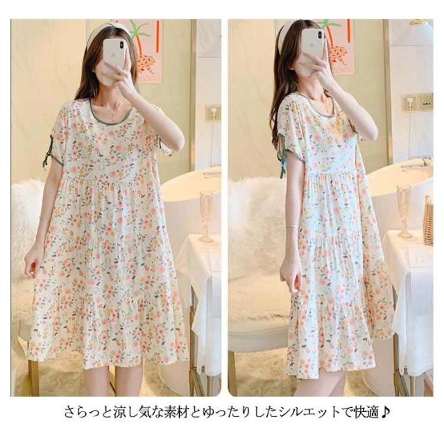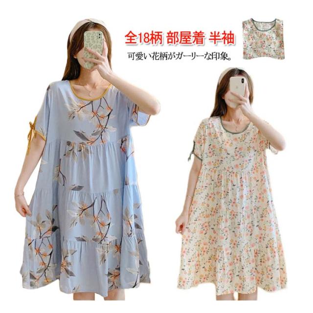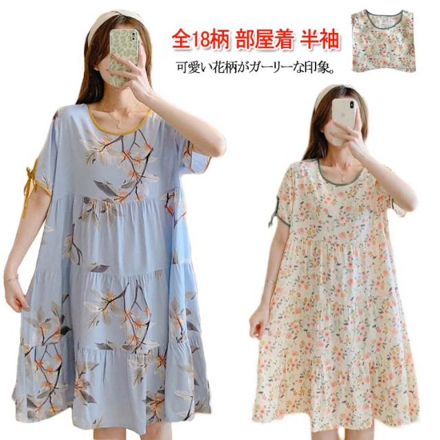 全18柄 パジャマ ワンピース 半袖 レディース ルームワンピース 花柄 夏用 ルームウェア インナー ナイトウェア ロングワンピース 女性 部屋着 寝間着 可愛い おしゃれ ゆったり