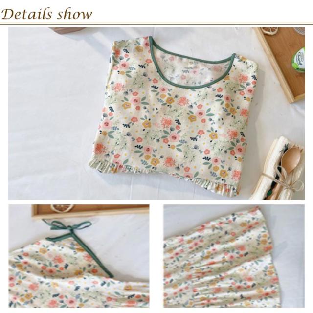 | 可愛い花柄がガーリーな印象。 さらっと涼し気な素材とゆったりしたシルエットで快適♪ 1枚で着用するのはもちろん、レギンスやボトムと合わせて着るのもオススメです。 宿の中をプラプラ散策したり、ちょっとお外にも出られちゃう、落ち着いたシンプルなデザイン。 おうち時間もかわいいルームウェアで楽しく過ごせます。 | |