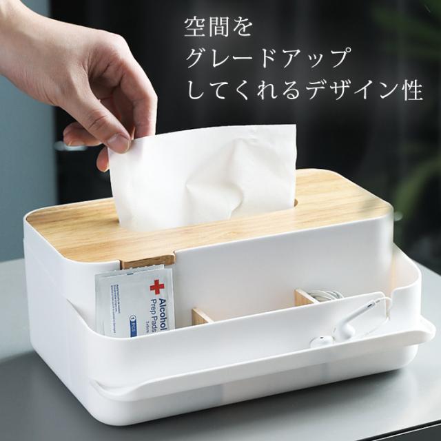 ティッシュケース 小物入れ付き 収納 ティッシュボックス おしゃれ 北欧 インテリア 木製 お洒落 スマホスタンド