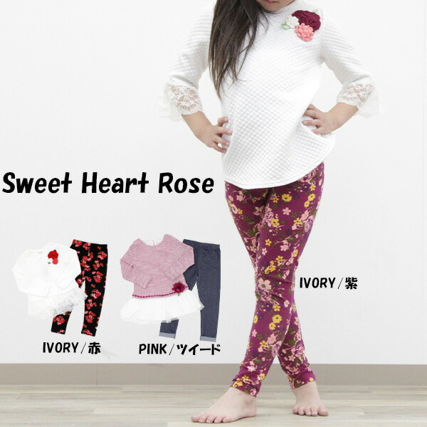 送料無料 アウトレット SweetHeartRose スイートハートローズ キッズ 上下セット ガールズカットソー レギンスセット 春 秋 #589850 P104M
