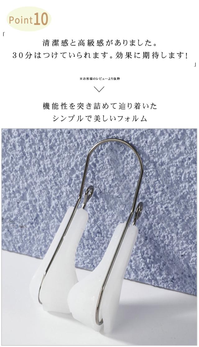 ・1日たったの30分から始められる ・鼻に挟むだけだからいつでも気軽に使える ・耐久性のあるメタルフレームで長持ち ・パッド部分は柔らかいシリコン採用で痛くない ・パッドの向きを変えて厚さ調節できる ・フレーム部分でも挟み具合を変えられる ・専用の収納ポーチで持ち運びも楽 ・パッドとフレームは取り外せるから手入れも簡単 ・丸洗いできるから衛生的 ・気に入らなければ返品OK |