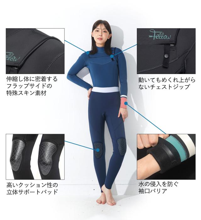 FELLOW ウェットスーツ フルスーツ 3mm レディース チェストジップ サーフィン ジャーフル