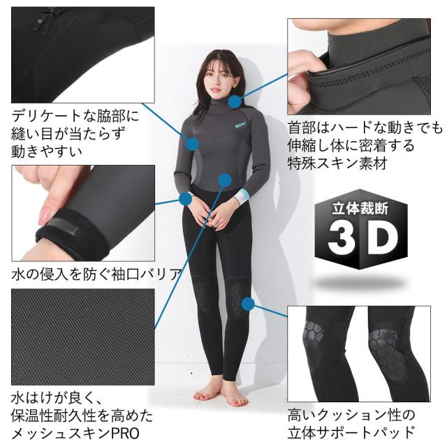 FELLOW ウェットスーツ レディース バックジップ フルスーツ 3mm サーフィン スキン JPSA 日本規格