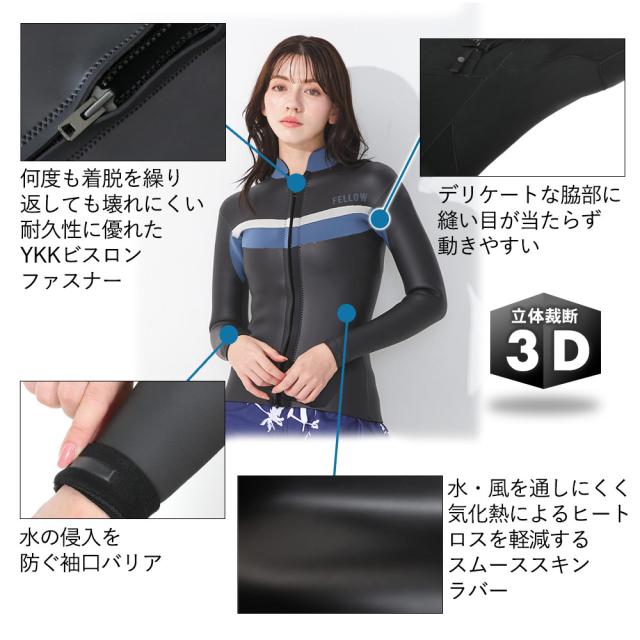 FELLOW ウェットスーツ タッパー フロントジップ 3mm スキン ラバー レディース サーフィン JPSA 日本規格 SUP