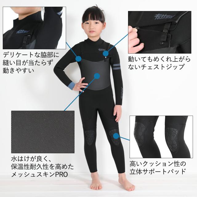 FELLOW ウェットスーツ フルスーツ チェストジップ 3mm キッズ サーフィン スキン ジャージ JPSA 日本規格 SUP