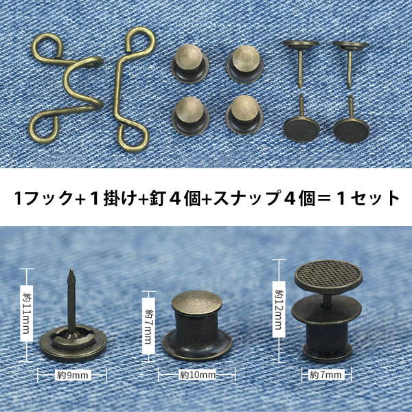 【2個セット】ウエストバックル 交換用バックル メタル ジーンズ スカート ベルト 調整可能 スナップネイル ウエストバックルセット ズボン 送料無料