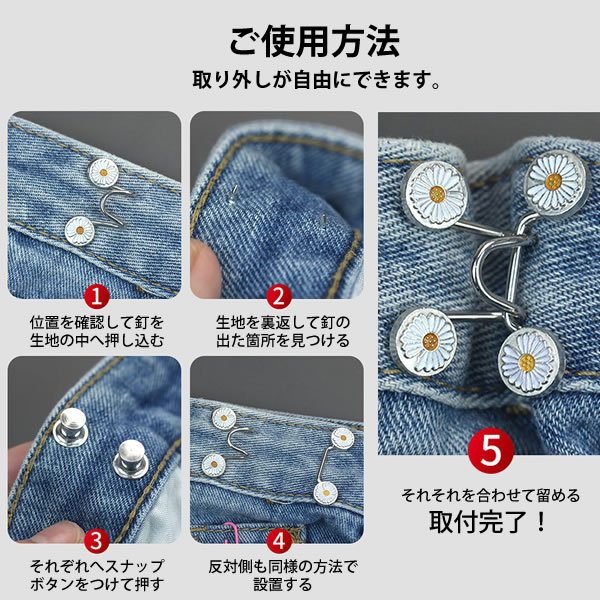 【2個セット】ウエストバックル 交換用バックル メタル ジーンズ スカート ベルト 調整可能 スナップネイル ウエストバックルセット ズボン