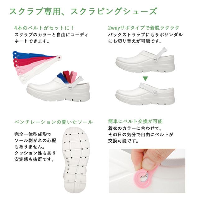 4色のベルトがセットになっていて、スクラブのカラーに合わせて自由に付け替えられます。