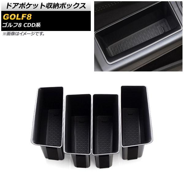 ドアポケット収納ボックス フォルクスワーゲン ゴルフ8 2021年06月〜 ブラック ABS製 フロント&リア用 滑り止めマット付き 入数:1セット(4個) AP-AS632-FR
