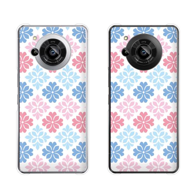 AQUOS R7 (docomo SH-52C / SoftBank) スマホ ケース ハード カバー パターン22 花 ピンク/水色