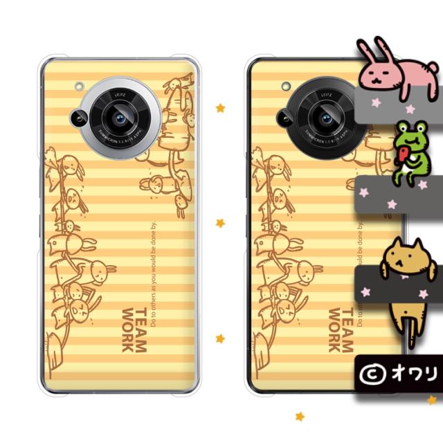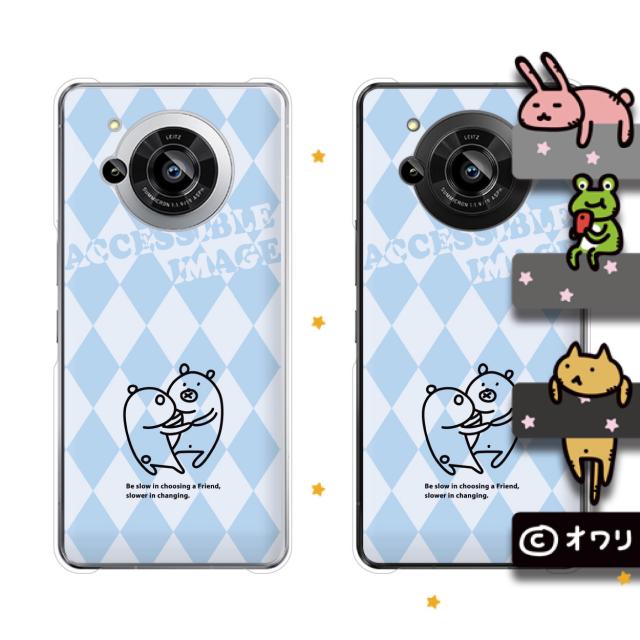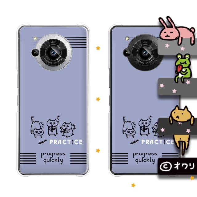 AQUOS R7 (docomo SH-52C / SoftBank) スマホ ケース ハード カバー オワリ 「ネコのリコーダー練習」 グレー
