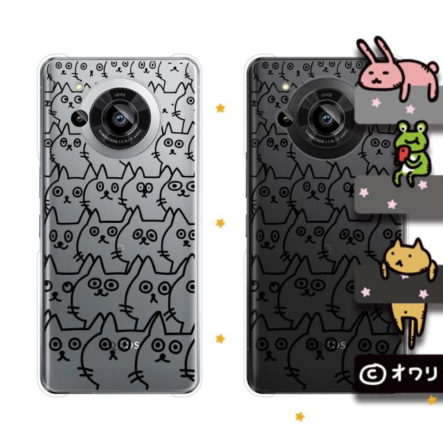 AQUOS R7 (docomo SH-52C / SoftBank) スマホ ケース ハード カバー オワリ 「迫りくるネコ・黒」 透明