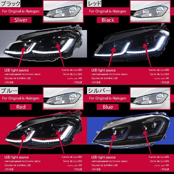 AL ヘッド ランプ 適用: VW ゴルフ 7 MK7 LED 2013-2017 ヘッドライト 7.5 GTI ヘッドライト DRL ウインカー ハイ ビーム ブラック〜シルバー AL-OO-7915 カラー: ブラック レッド ブルー シルバー