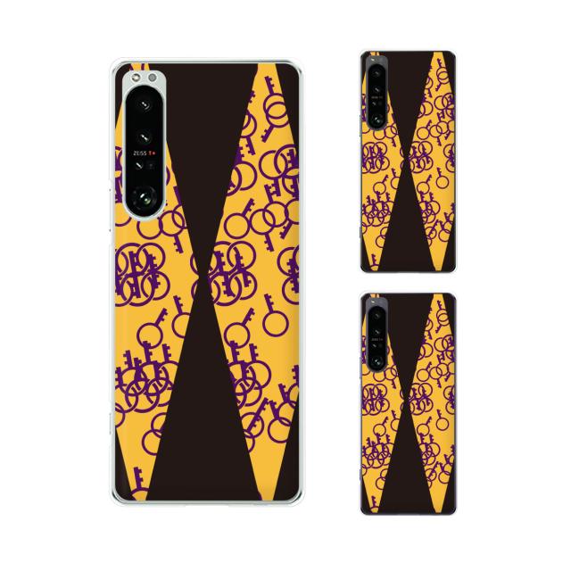 Xperia 1 IV (au SOG06 / docomo SO-51C / SoftBank) スマホ ケース ハード カバー 和柄 鍵 黒 黄色