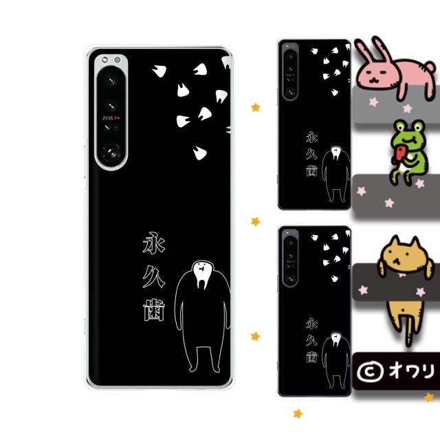 Xperia 1 IV (au SOG06 / docomo SO-51C / SoftBank) スマホ ケース ハード カバー オワリ 「永久歯キャラクター」 ブラック