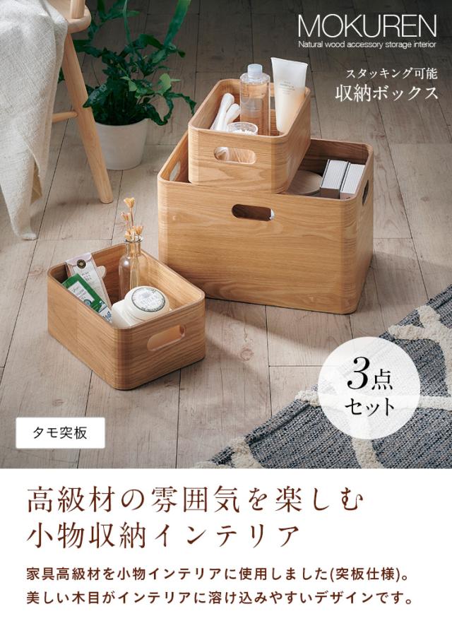 高級材突板使用 MOKUREN(モクレン) 収納ボックス 3点セット RF-19025NA タモ ストレージボックス 収納ケース 収納BOX おもちゃ入れ おもちゃ収納 おもちゃ箱 小物入れ 木製 おしゃれ