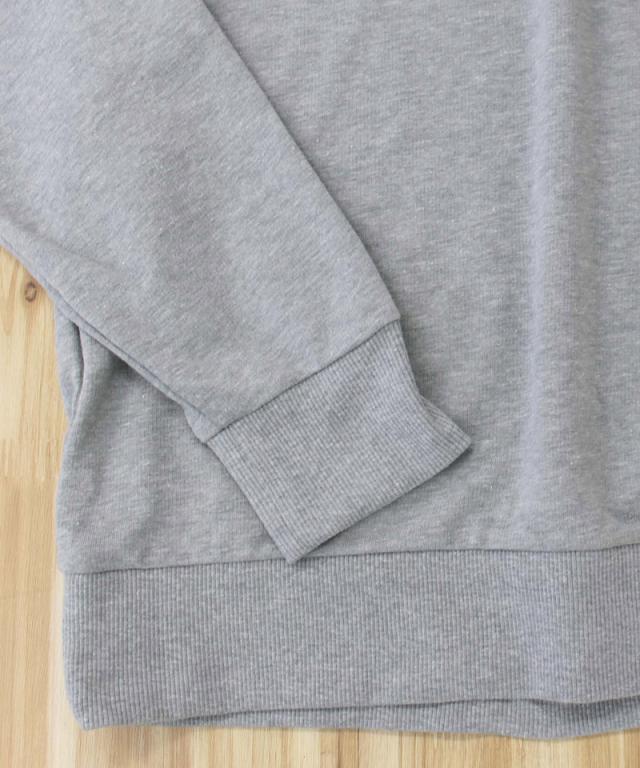 ライトウエイトスウェットの1枚生地、裏毛仕立て、袖&裾はリブ仕様。