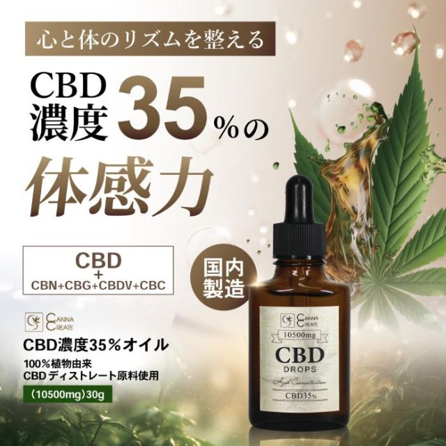 CBD オイル 30g 高濃度 35% CBD10500mg 高品質 ディスティレート ドロップ ディストレート 国内製造 CANNACREATE CBG CBDV D-35%30