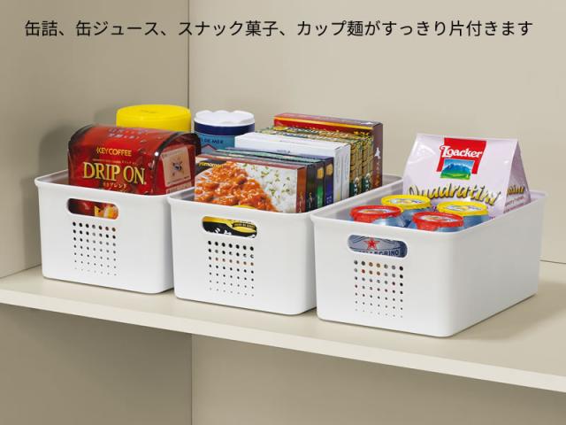 収納例缶詰、缶ジュース、スナック菓子、カップ麺などの収納に。