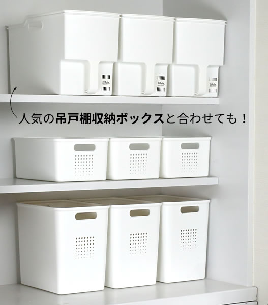 大人気の吊り戸棚収納ボックスと同じ色味。カラーを揃えてキッチンに統一感を。