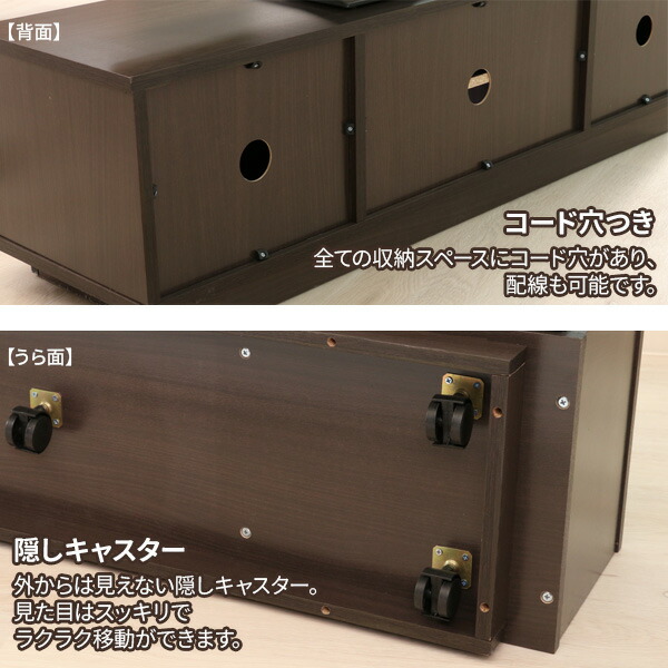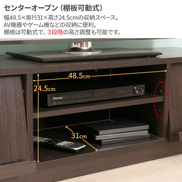 センターオープン仕様幅48.5×奥行31×高さ24.5cmの収納スペースは、AV機器やゲーム機などの収納に便利。可動式の棚板は、高さの調整も可能です。
