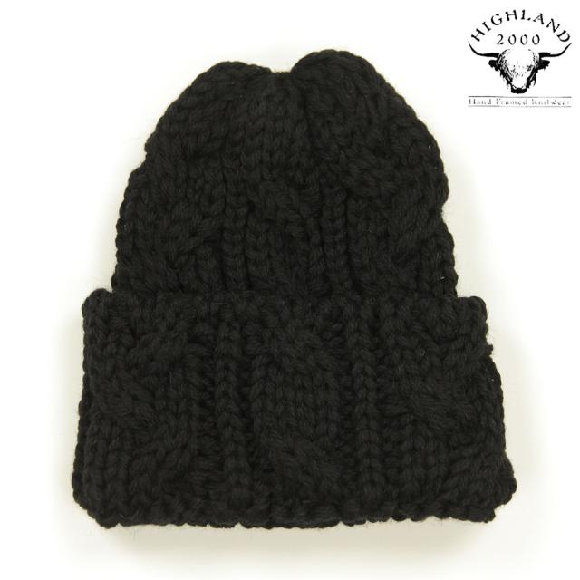 ハイランド2000 ニットキャップ メンズ 正規品 HIGHLAND2000 ウール 帽子 ニット帽 ボブキャップ ORIGINAL CHUNKY 016 KNIT BOBCAP BRITSHWOOLL REGULAR BLACK