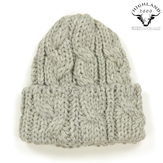 ハイランド2000 ニットキャップ メンズ 正規品 HIGHLAND2000 ウール 帽子 ニット帽 ボブキャップ ORIGINAL CHUNKY 016 KNIT BOBCAP BRITSHWOOLL REGULAR LIGHT GREY