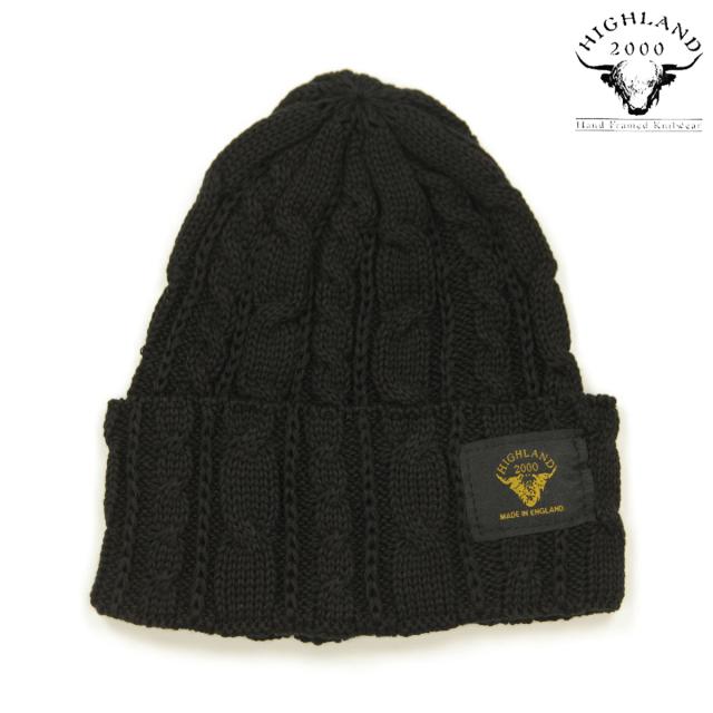 ハイランド2000 ニットキャップ メンズ 正規品 HIGHLAND2000 コットン 帽子 ニット帽 ボブキャップ ORIGINAL 016 CABLE KNIT BOBCAP COTTON REGULAR BLACK