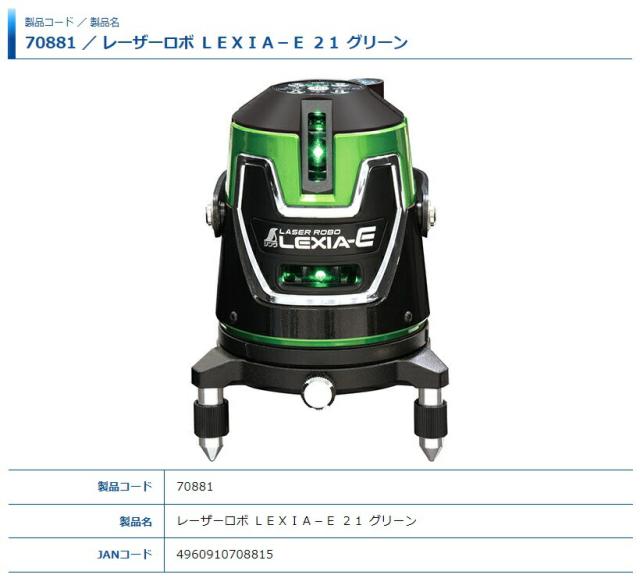 シンワ レーザー墨出し器 70881 レーザーロボ LEXIA-E 21 グリーン 振動に強いセンサー+モーター方式 グリーンレーザー墨出器 。