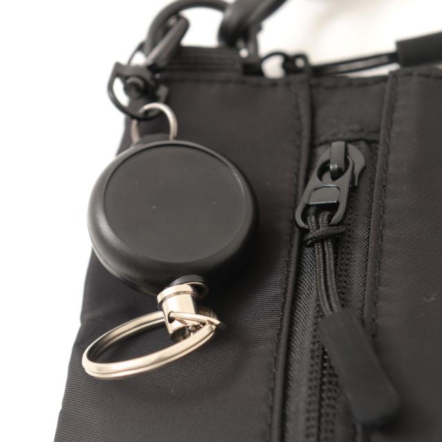 伸ばして離せば戻るワイヤー付きの便利なワイヤーリールキーリング付き。