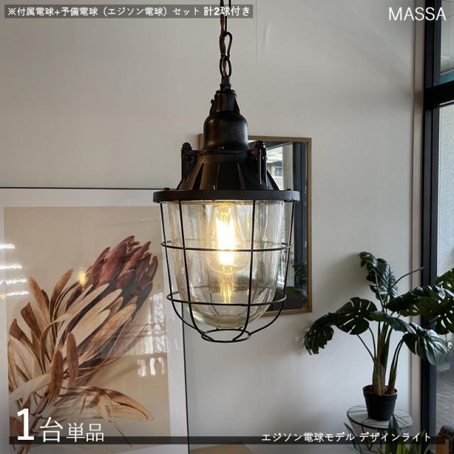 MASSAマッサ ペンダントライト照明【1台単品+付属電球+予備電球】1灯タイプ エジソン球 LED電球にも対応 マリンライト風 レトロモダン 室内灯 コンパクト インダストリアルデザインLHT-716