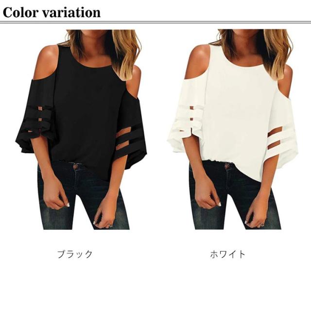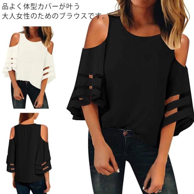 半袖 無地 二の腕カバー カジュアル フレア袖 フレアスリーブ 大きいサイズ きれいめ 入学式 ママ 卒業式 黒 夏 春