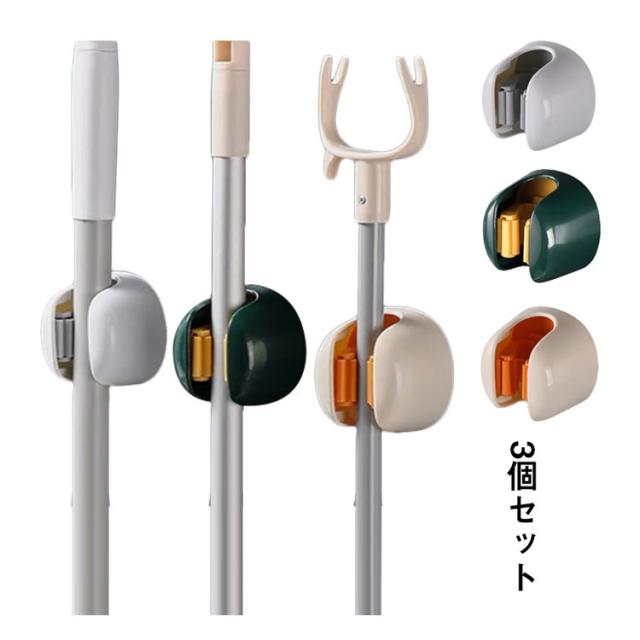 【3個セット】モップホルダー 強力粘着 壁掛けフック 耐荷重4kg モップ ほうき 清掃道具 傘 ローラー ほうき モップ おしゃれ 壁 穴開けない 傷つけない 収納 送料無料