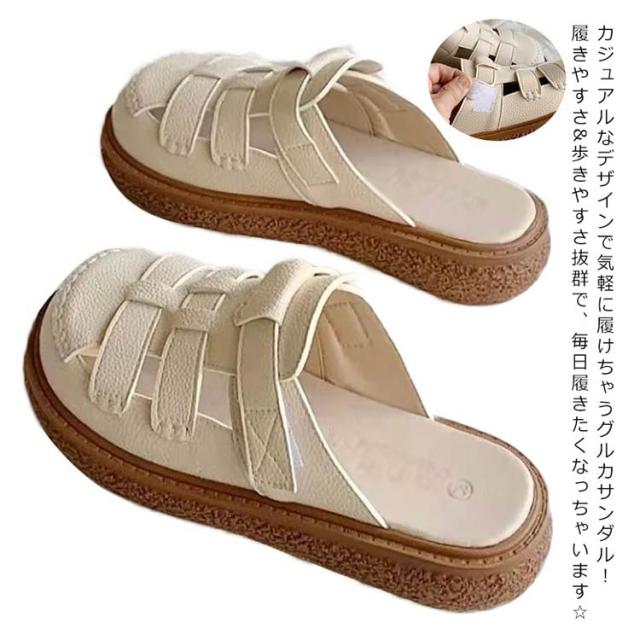 送料無料 靴 レディース サンダル スリッパ 22.5-25cm グルカサンダル グル 歩きやすい お洒落 編みデザイン トラップ ストラップサンダル ベルトサンダル ローヒール シューズ 厚底 厚底シューズ 可愛い 滑り止め シンプル コンビニ 婦人靴 20代 30代 40代 50代
