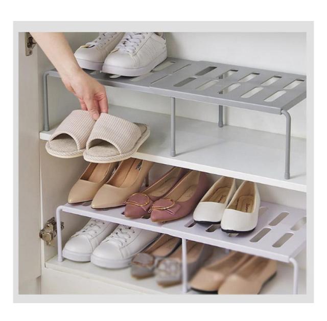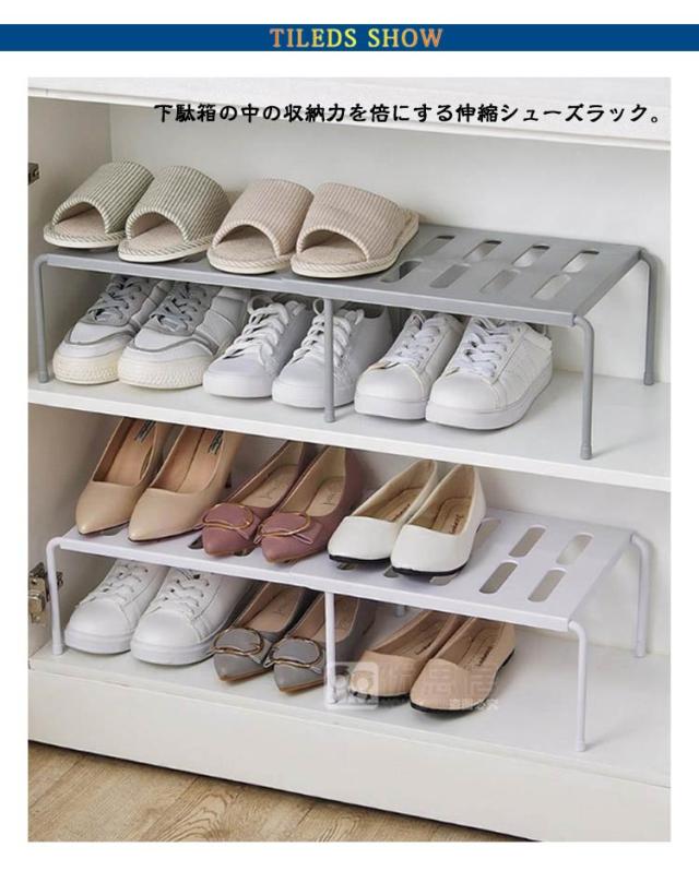 | 下駄箱の中の収納力を倍にする伸縮シューズラック。 横幅の伸縮が自由自在。 玄関に出しておきたい靴も整頓。 コンパクトでスベースを有効利用。 | |