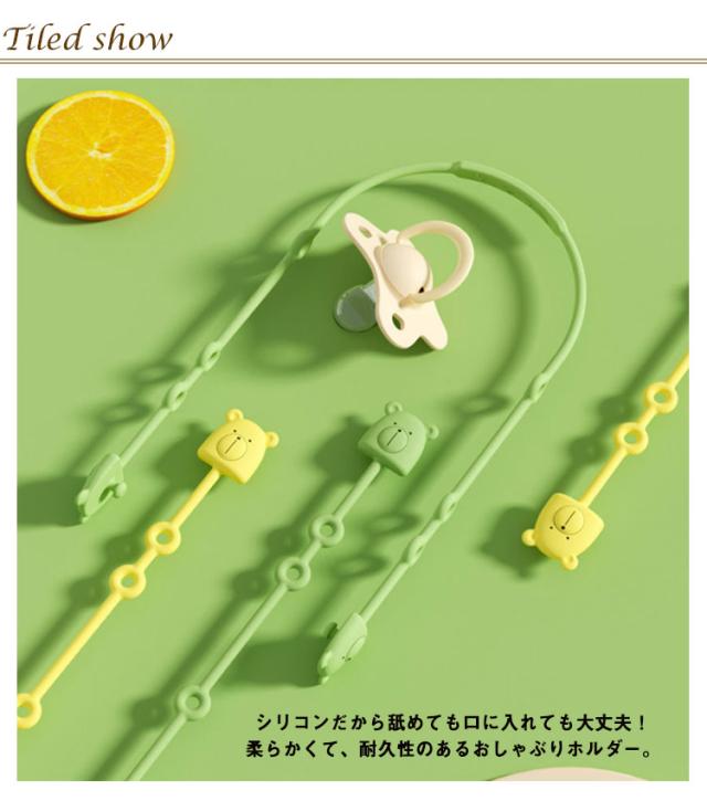 | 【安全素材】シリコンだから舐めても口に入れても大丈夫!柔らかくて、耐久性のあるおしゃぶりホルダー。 【お手入れ簡単】ホルダーの消毒もしたかった!除菌ウェットテイッシュでさっと拭ける!水洗いでも十分、念入りに熱湯消毒も可能◎ 【いろんなものや場所で】おしゃぶりだけじゃない、歯固めやおもちゃ、マグなどなどマルチホルダー。落下防止!反対側は手につけたり、ベッドやベビーカーにつけたり、用途多様。 【デザイン】可愛いクマさんに綺麗な色をチョイス。ポチッとはめるだけ 使い方も簡単。丸穴が6個あるから自由調節。 | |