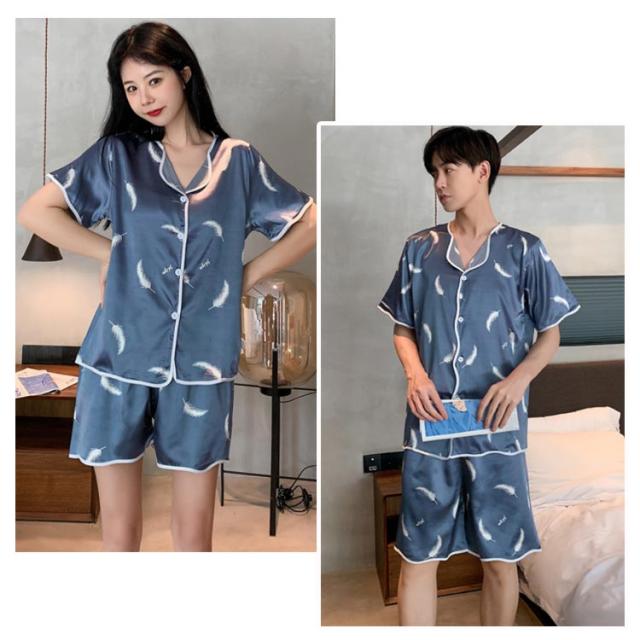 | サラツルッとした高級感あるシルク調のサテン地を 使用した上下セットの襟付きパジャマ! 男性用と女性用のサイズをご用意したのでペアでも 着用できます。 | |