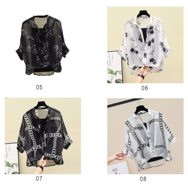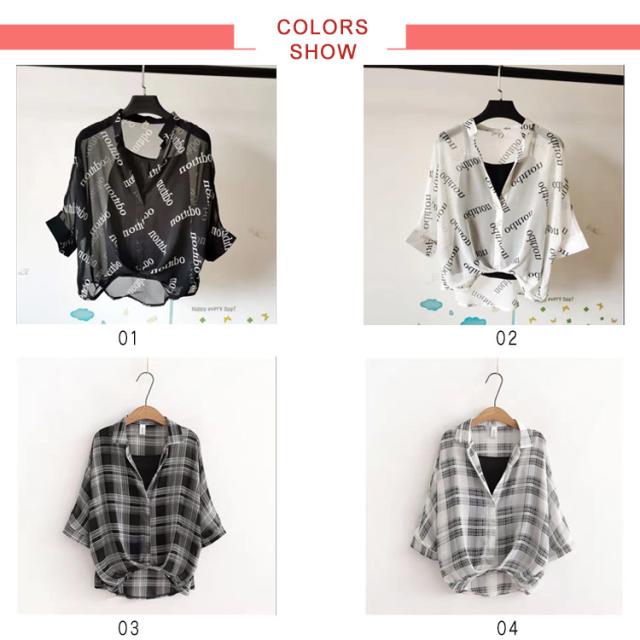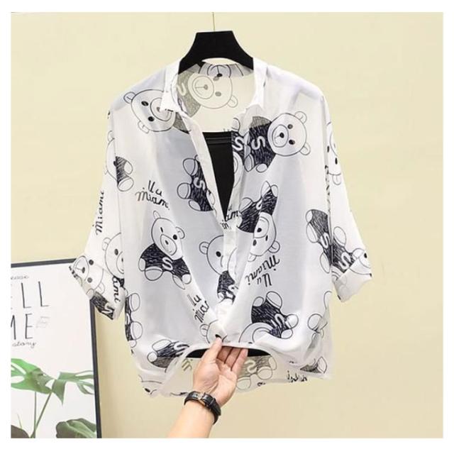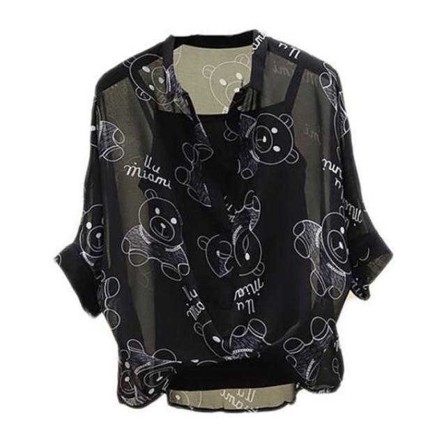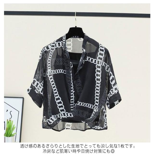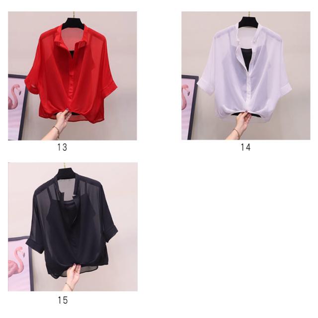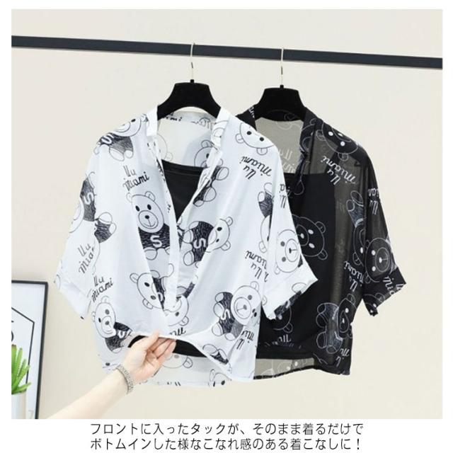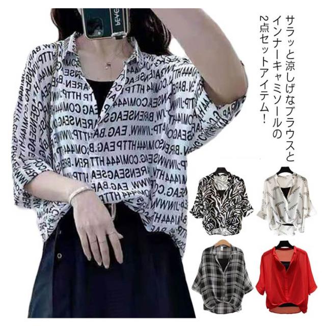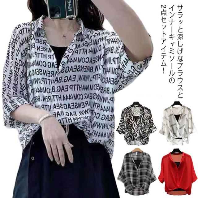 レディース シアーシャツ キャミソール付き 2点セット 夏 ブラウス シースルー ゆったり 透け感 ボリュームスリーブ バルーンスリーブ 半袖 トップス シフォン シャツ 日焼け止め 紫外線対策 冷房対策 カジュアル おしゃれ 見?せ 送料無料