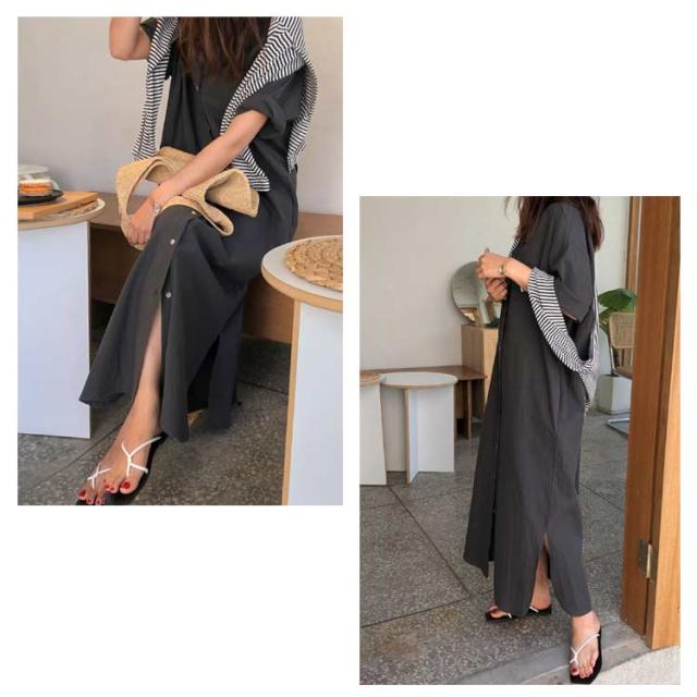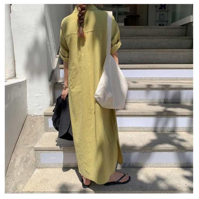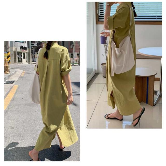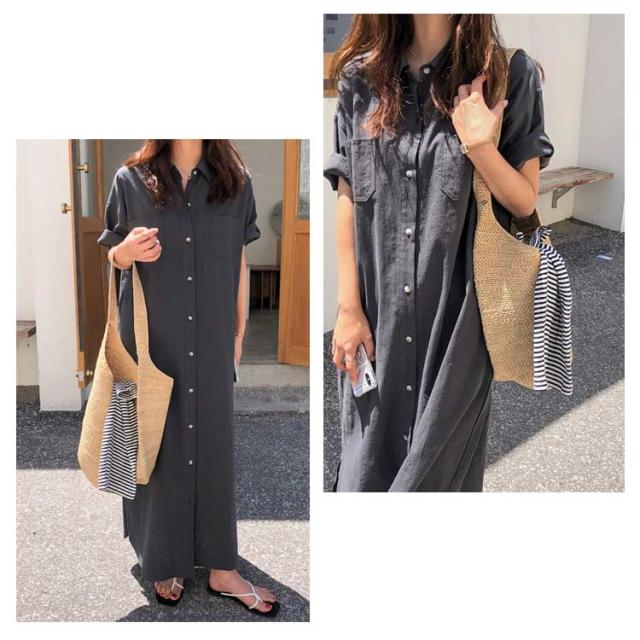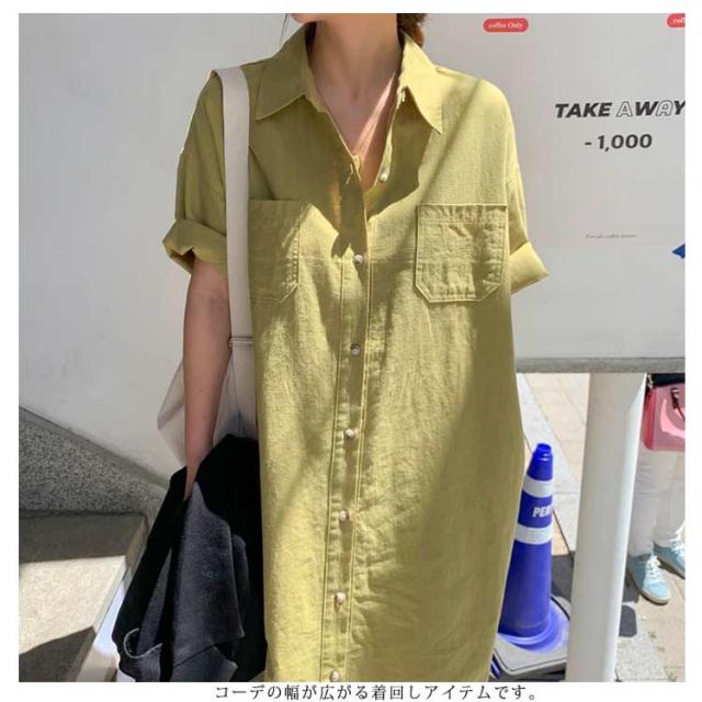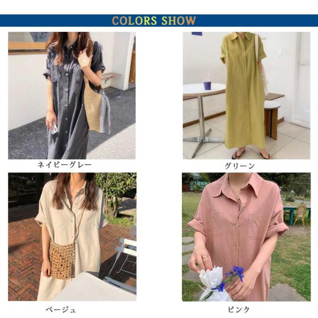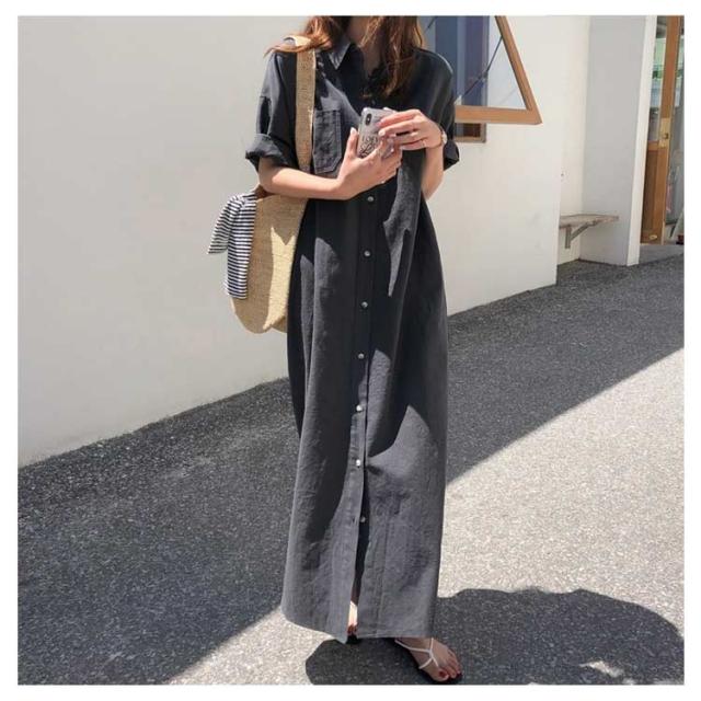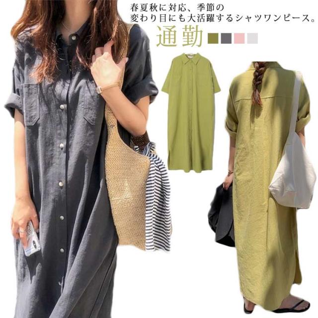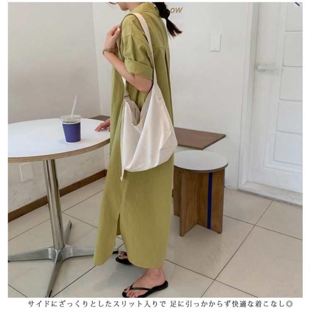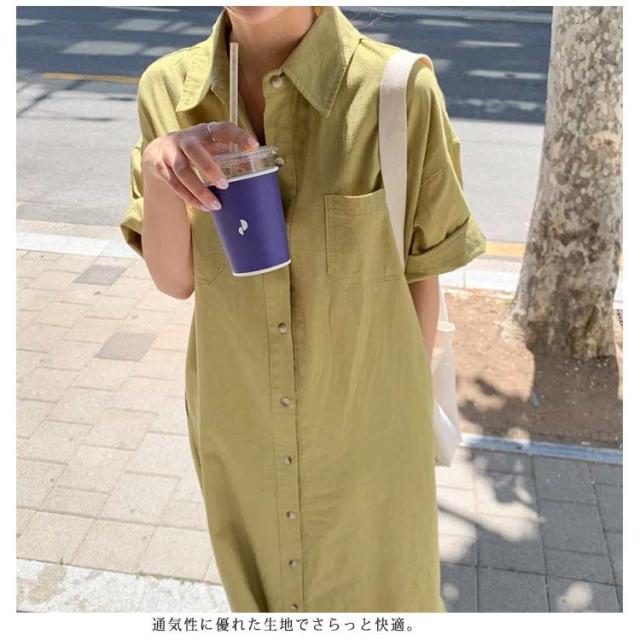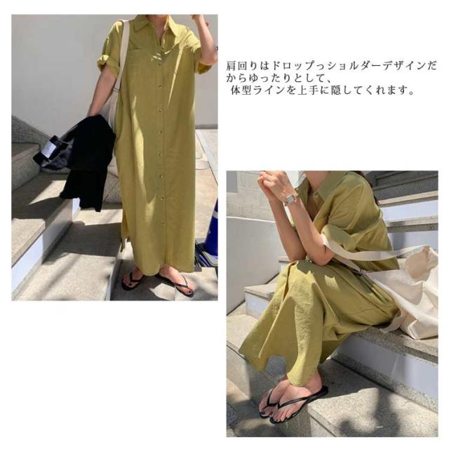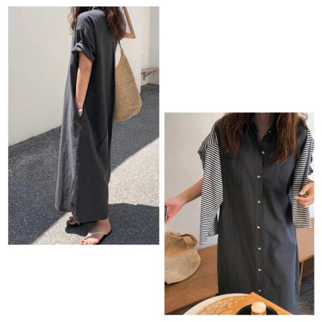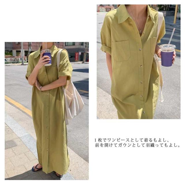 送料無料 シャツワンピース ロング丈 半袖 カジュアル レディース ロングスカート ロングシャツ ワンピース 羽織り シャツワンピース ワイド ゆったり オーバーサイズ 無地 カジュアル 春 夏 韓国ファッション 大人 通勤