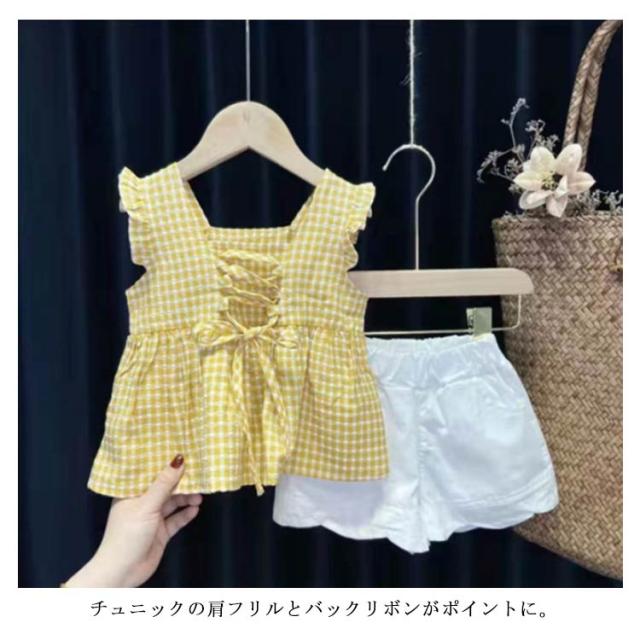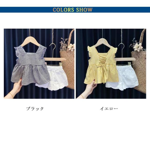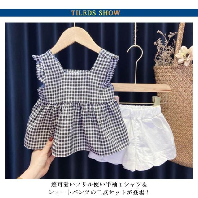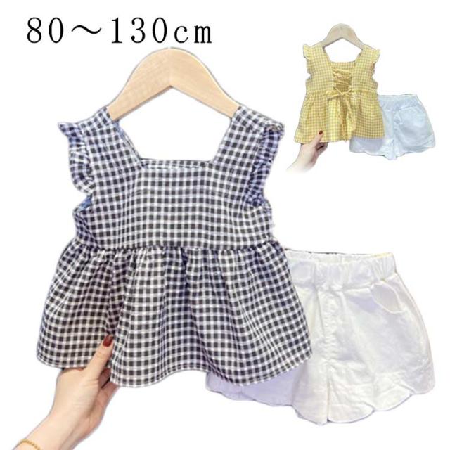 子供服 セットアップ 女の子 チェック 夏 カジュアル ナチュラル トップス+半ズボン 半袖 パンツ 上下セット 薄手 ゆったり リゾート キッズ 可愛い きれいめ 80 90 100 110 120 130 送料無料